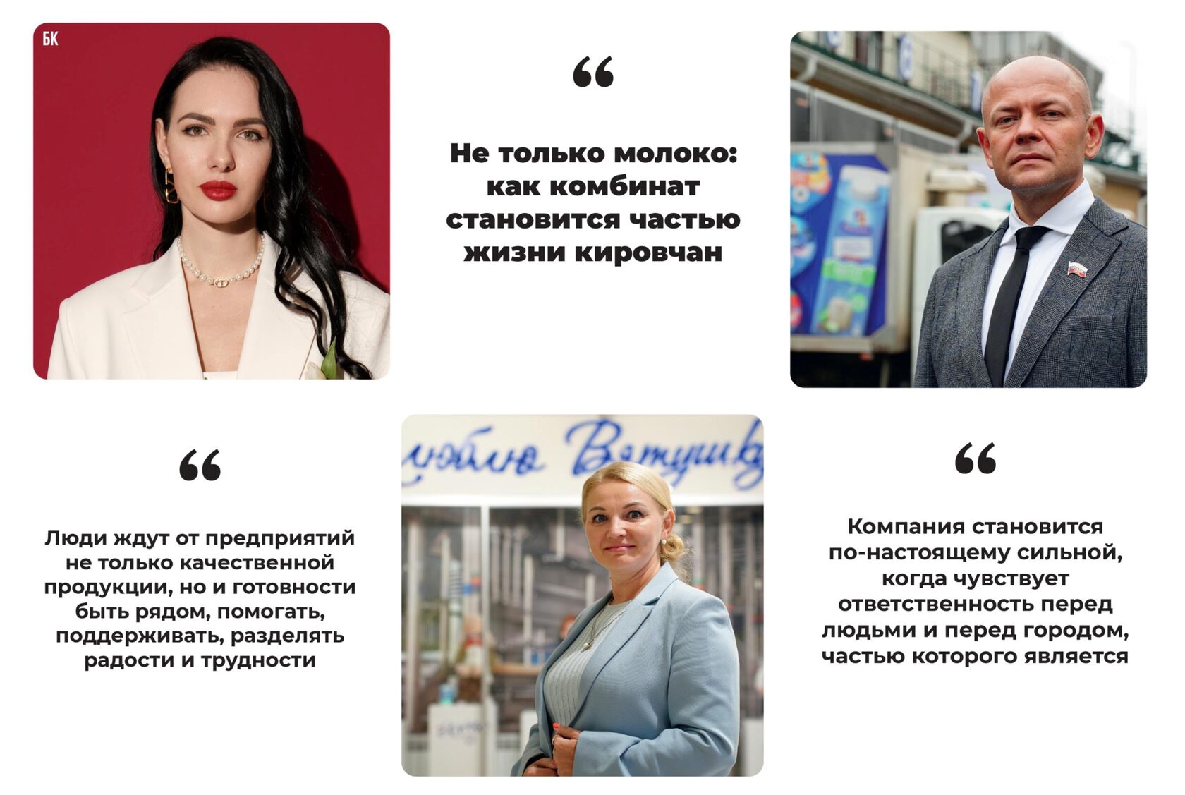 — Когда говорят о бизнесе, чаще всего вспоминают про цифры и производство, про экономические показатели и конкурентоспособность. Но всё это остаётся лишь сухими формулами до тех пор, пока за ними не встаёт главный смысл — человек. Кировский молочный комбинат — именно такой пример. Для жителей Кирова это давно не только производственная площадка, где ежедневно выпускаются продукты питания. Это — социальный партнёр, сосед, участник жизни города, друг, на которого можно положиться.